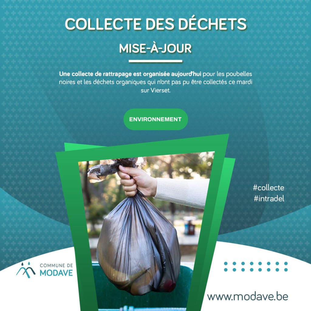 Une collecte de rattrapage est organisée aujourd’hui pour les poubelles noires et les déchets organiques qui n’ont pas pu être collectés ce mardi à Vierset.